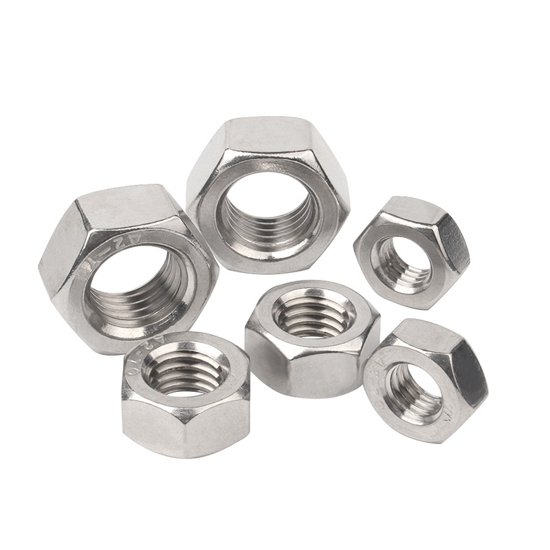 Шестигранная гайка DIN934 из нержавеющей стали A2-70 A4-80: шестигранный крепёжный элемент, соответствующий стандарту DIN 934, доступен в двух классах прочности: A2-70 (из нержавеющей стали 304, прочность на разрыв 700 МПа) и A4-80 (из нержавеющей стали 316, прочность на разрыв 800 МПа). Гайка изготовлена из коррозионно-стойкой нержавеющей стали, имеет гладкую резьбу и точные шестигранные размеры.