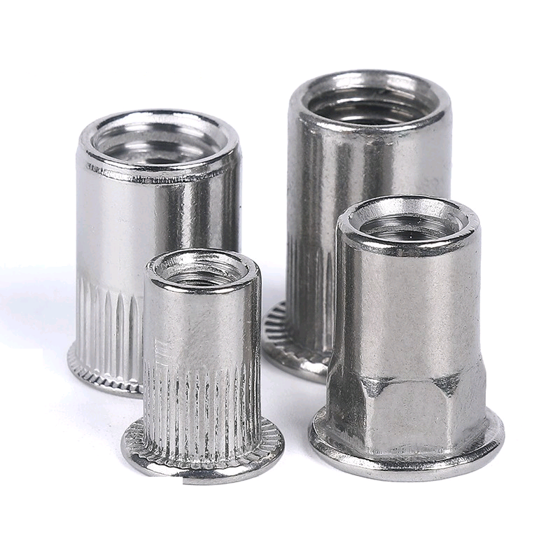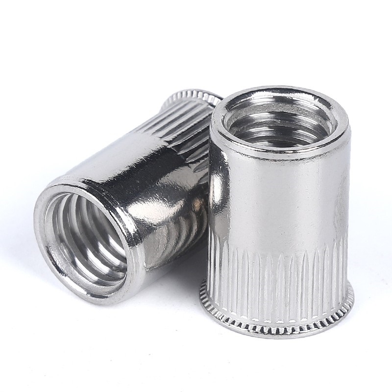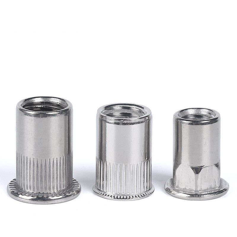 Заклёпочные гайки DIN7340 из нержавеющей стали с насечкой представляют собой цилиндрические крепёжные изделия с насечкой на внешней поверхности и внутренней резьбой. Изготовленные из нержавеющей стали (например, 304 для общей коррозионной стойкости, 316 для эксплуатации в агрессивных средах, например, в морской среде), заклёпки обеспечивают лучшее сцепление с тонкими деталями (например, листовым металлом или полыми трубами). Соответствуя стандарту DIN7340, они позволяют осуществлять монтаж «слепой стороной» (без доступа с обратной стороны), обеспечивая долговечную внутреннюю резьбу для тонких материалов. Они широко используются для крепления автомобильных кузовных панелей, сборки металлических каркасов мебели, соединений конструкций лёгких конструкций и крепления корпусов электронного оборудования.